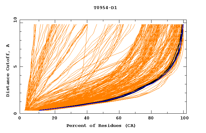 GDT analysis: largest set of CA atoms (percent of the modeled structure) that can fit under DISTANCE cutoff: 0.5A, 1.0A, 1.5A, ... , 10.0A