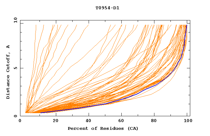 GDT analysis: largest set of CA atoms (percent of the modeled structure) that can fit under DISTANCE cutoff: 0.5A, 1.0A, 1.5A, ... , 10.0A