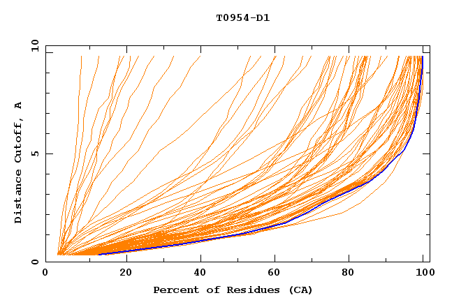 GDT analysis: largest set of CA atoms (percent of the modeled structure) that can fit under DISTANCE cutoff: 0.5A, 1.0A, 1.5A, ... , 10.0A