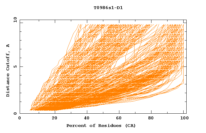 GDT analysis: largest set of CA atoms (percent of the modeled structure) that can fit under DISTANCE cutoff: 0.5A, 1.0A, 1.5A, ... , 10.0A