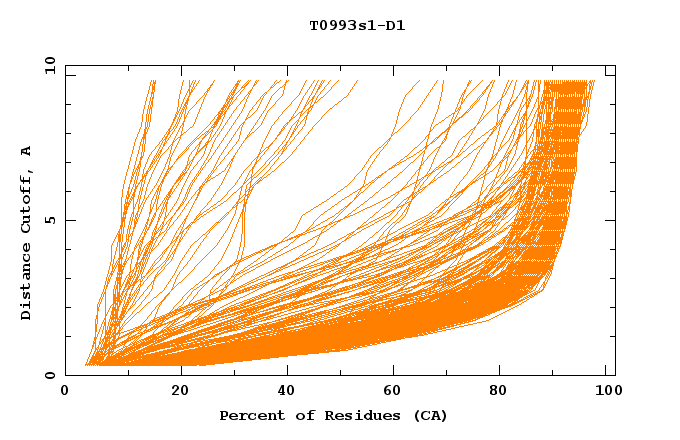 GDT analysis: largest set of CA atoms (percent of the modeled structure) that can fit under DISTANCE cutoff: 0.5A, 1.0A, 1.5A, ... , 10.0A