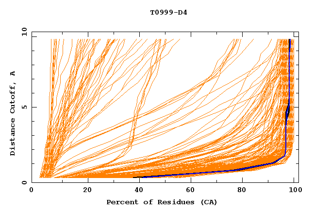 GDT analysis: largest set of CA atoms (percent of the modeled structure) that can fit under DISTANCE cutoff: 0.5A, 1.0A, 1.5A, ... , 10.0A