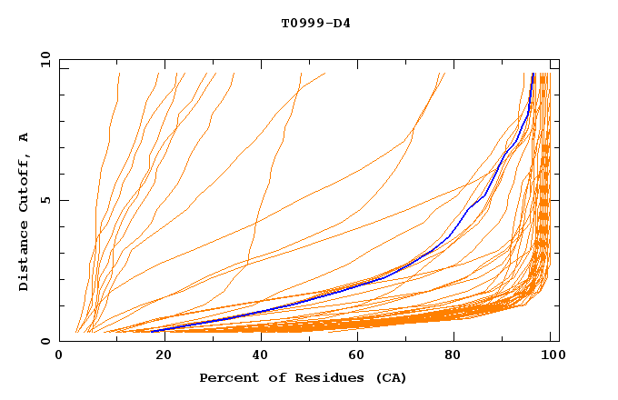 GDT analysis: largest set of CA atoms (percent of the modeled structure) that can fit under DISTANCE cutoff: 0.5A, 1.0A, 1.5A, ... , 10.0A