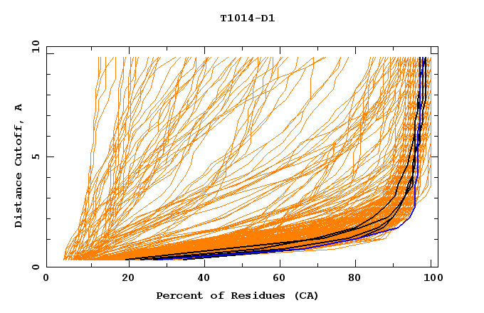 GDT analysis: largest set of CA atoms (percent of the modeled structure) that can fit under DISTANCE cutoff: 0.5A, 1.0A, 1.5A, ... , 10.0A