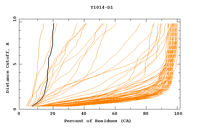 GDT analysis: largest set of CA atoms (percent of the modeled structure) that can fit under DISTANCE cutoff: 0.5A, 1.0A, 1.5A, ... , 10.0A