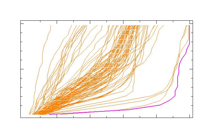GDT analysis: largest set of CA atoms (percent of the modeled structure) that can fit under DISTANCE cutoff: 0.5A, 1.0A, 1.5A, ... , 10.0A