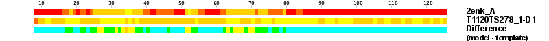): difference between the corresponding Model-Target and Template-Target CA-CA distances (see above). Negative values show regions where a model has better fit to the target than the template, i.e. areas of potential improvement over the template.