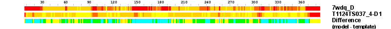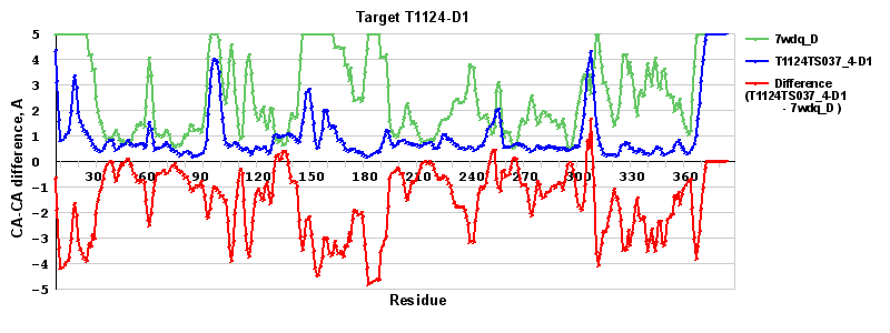 ): difference between the corresponding Model-Target and Template-Target CA-CA distances (see above). Negative values show regions where a model has better fit to the target than the template, i.e. areas of potential improvement over the template.