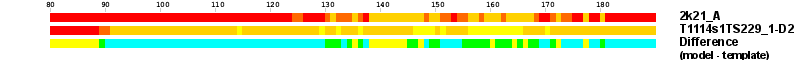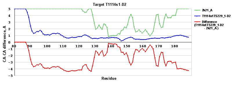 ): difference between the corresponding Model-Target and Template-Target CA-CA distances (see above). Negative values show regions where a model has better fit to the target than the template, i.e. areas of potential improvement over the template.