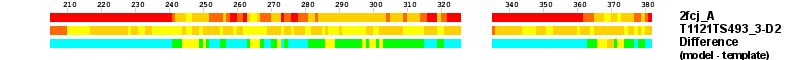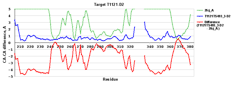 ): difference between the corresponding Model-Target and Template-Target CA-CA distances (see above). Negative values show regions where a model has better fit to the target than the template, i.e. areas of potential improvement over the template.