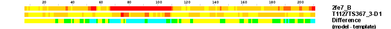 ): difference between the corresponding Model-Target and Template-Target CA-CA distances (see above). Negative values show regions where a model has better fit to the target than the template, i.e. areas of potential improvement over the template.