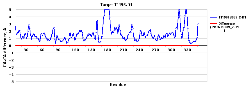 ): difference between the corresponding Model-Target and Template-Target CA-CA distances (see above). Negative values show regions where a model has better fit to the target than the template, i.e. areas of potential improvement over the template.